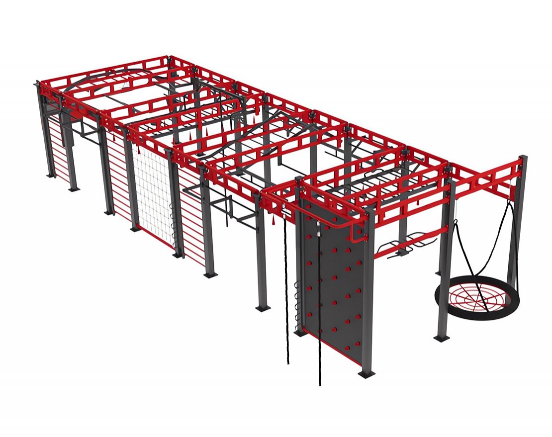 • В комплект входит: брусья, канат, турник, шведская стенка, рукоход, гладиаторская сетка, скалодром, груша, качель-гнездо, скамья