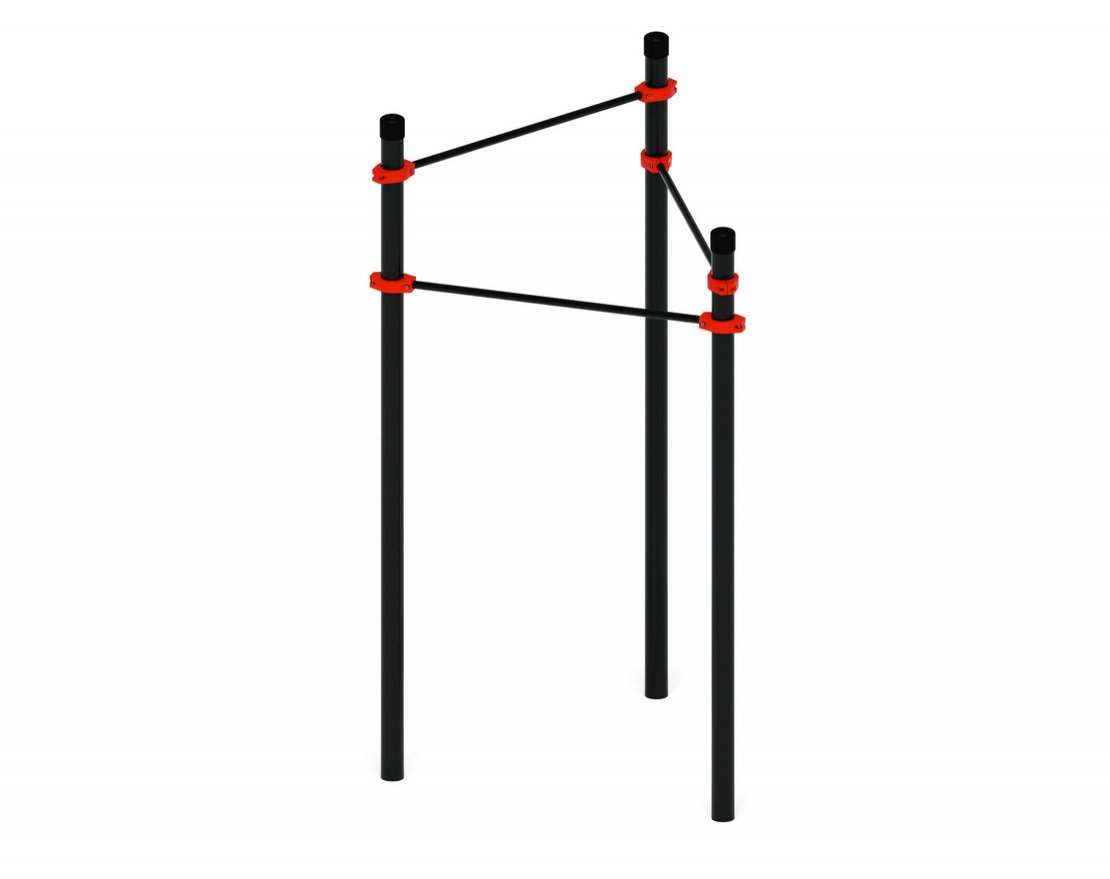 Воркаут-комплекс, размещённый на улице, состоит из трёх опорных столбов и трёх перекладин для выполнения подтягиваний.
