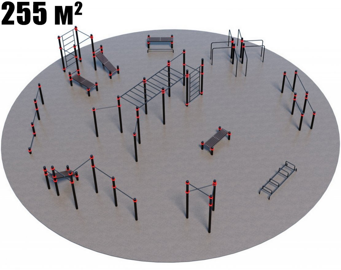 Площадка включает разнообразные спортивные снаряды, которые подойдут для тренировок на все группы мышц. Среди них: