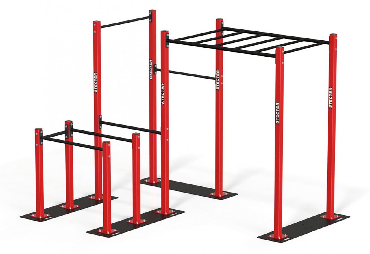 Спортивный комплекс представляет собой сборную конструкцию, состоящую из металлических элементов. Разборная конструкция позволяет легко монтировать и демонтировать комплекс. Высокая прочность элементов обеспечивает надёжность конструкции.