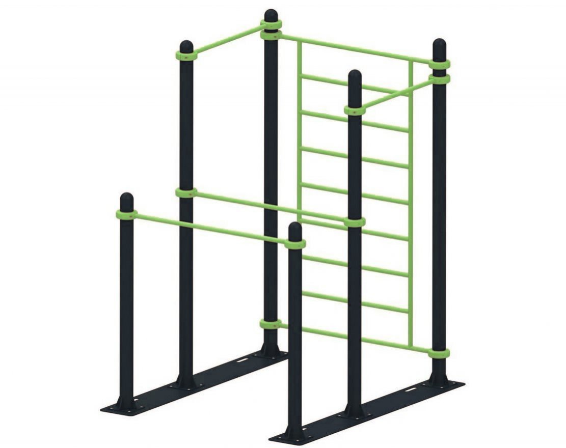 Комплекс для воркаута — это набор спортивных снарядов, который позволяет выполнять различные упражнения на силу и выносливость. Он состоит из турника, шведской стенки и брусьев. Элементы комплекса регулируются по высоте, что делает его удобным для людей разного роста.