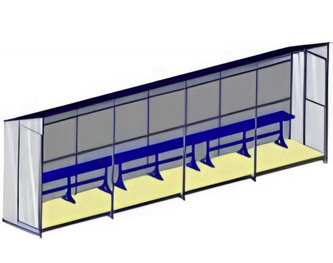 Бокс предназначен для комфортного ожидания игроками своего выхода на поле во время проведения спортивных соревнований. Он представляет собой закрытое помещение, которое обеспечивает игрокам укрытие от непогоды и защиту от посторонних взглядов.