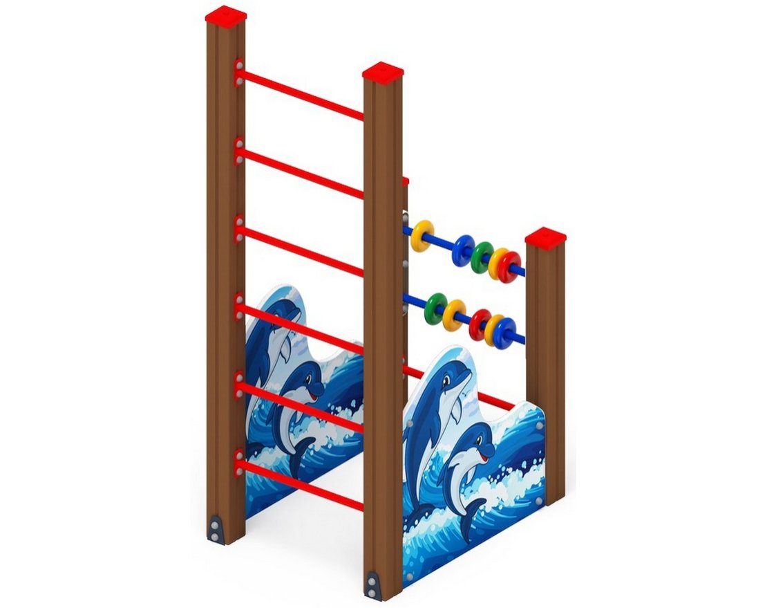 Борт выполнен из березовой фанеры толщиной 15 мм, и габаритами 820х800. Фанера имеет тщательную обработку торцов и окраску желтого цвета. Стилизованы под дельфина.