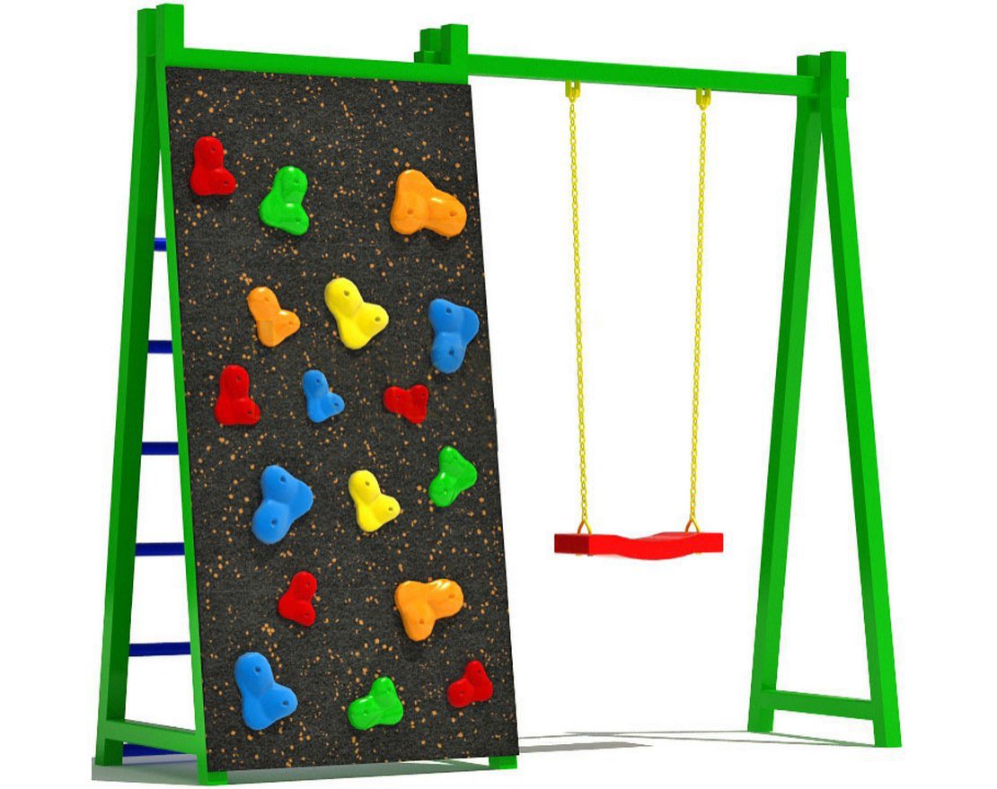 Комплекс сочетает классические качели, лесенку, размещённую под удобным и безопасным уклоном, а также имитацию настоящей стены для скалолазания. Такое разнообразие элементов в одном компактном игровом комплексе – настоящая находка, способная увлечь малыша с 3 лет и взрослеть вместе с ним, оставаясь полезной и актуальной даже для подростков. Благодаря небольшим размерам и возможности заинтересовать сразу несколько детей, комплекс уместен как во дворе многоэтажного дома, так и на собственном приусадебном участке.
