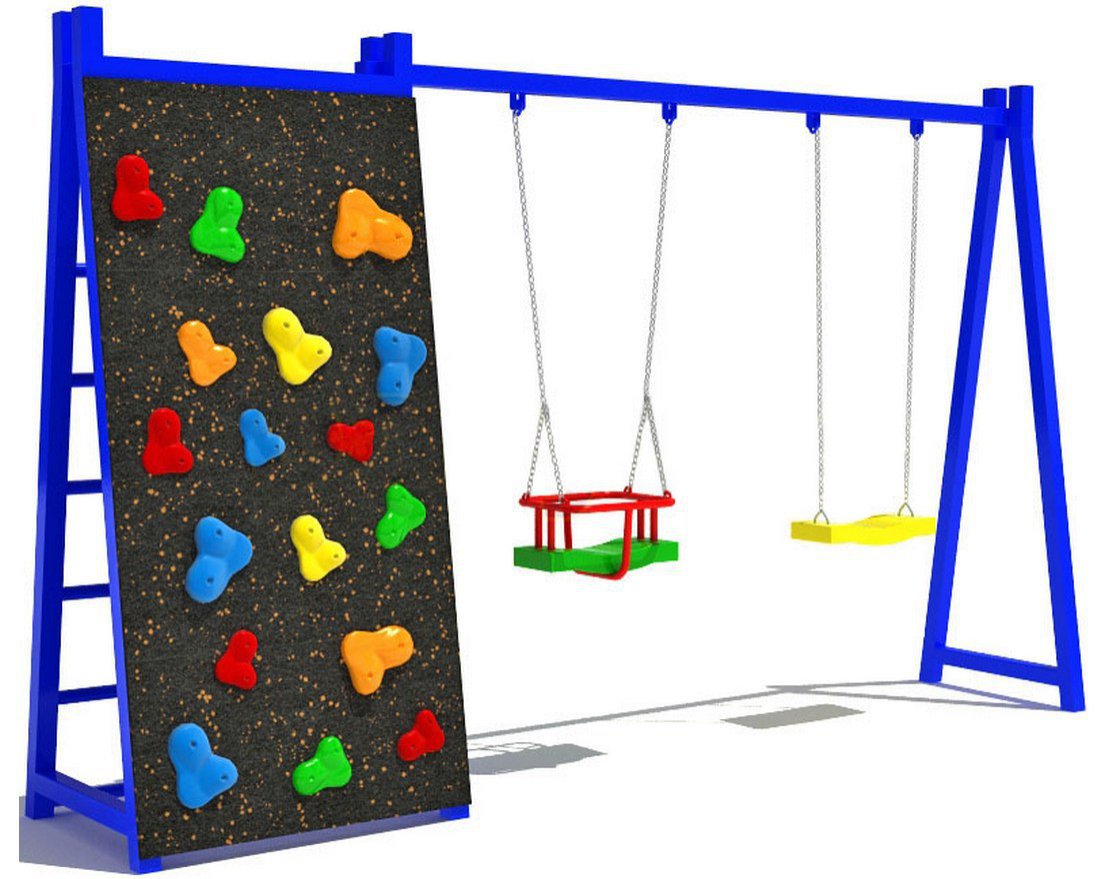 Спортивная лесенка, стенка для скалолазания и сразу две качели – одна классическая и одна для самых маленьких, с защитой сидения позволит одновременно веселиться и играть целой компании детворы. Благодаря продуманности детского комплекса, он уместен не только во дворах многоэтажных домов, но и на собственном участке. Конструкция отличается высоким уровнем безопасности, наклонные лесенки не опасны даже для детей в возрасте 3-4 лет, а две качели позволяют ребёнку качаться с самого детства.