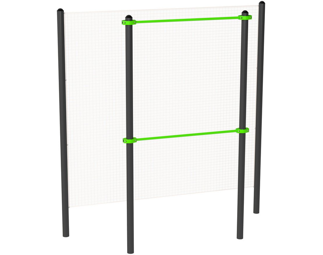 Элементы конструкции изготовлены из высококачественной профильной стальной трубы, что обеспечивает её прочность и долговечность. Конструкция окрашена порошковой краской, устойчивой к атмосферным воздействиям, и оснащена пластиковыми заглушками, которые защищают изделие от коррозии и механических повреждений.