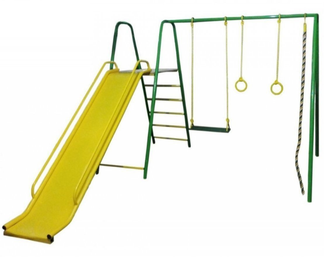 Комплекс доступен в четырёх цветах: зелёном, синем, фиолетовом и сером. Это отличный выбор для создания безопасной и увлекательной игровой площадки для детей.