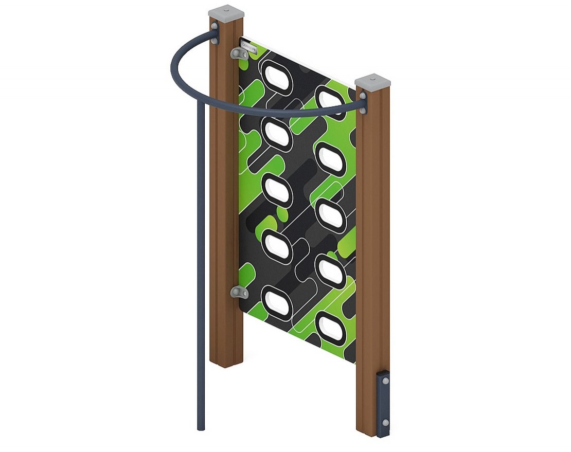 Скалолаз состоит из щита из влагостойкой фанеры, толщиной 18 мм. Размер щита: 1180х800 мм, с прорезями.