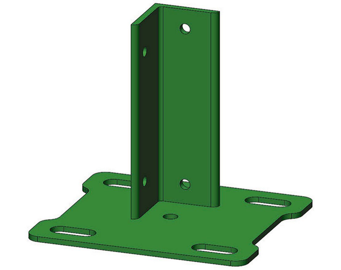 Фланец квадратный с уголком применяется при установке столба на готовый фундамент.