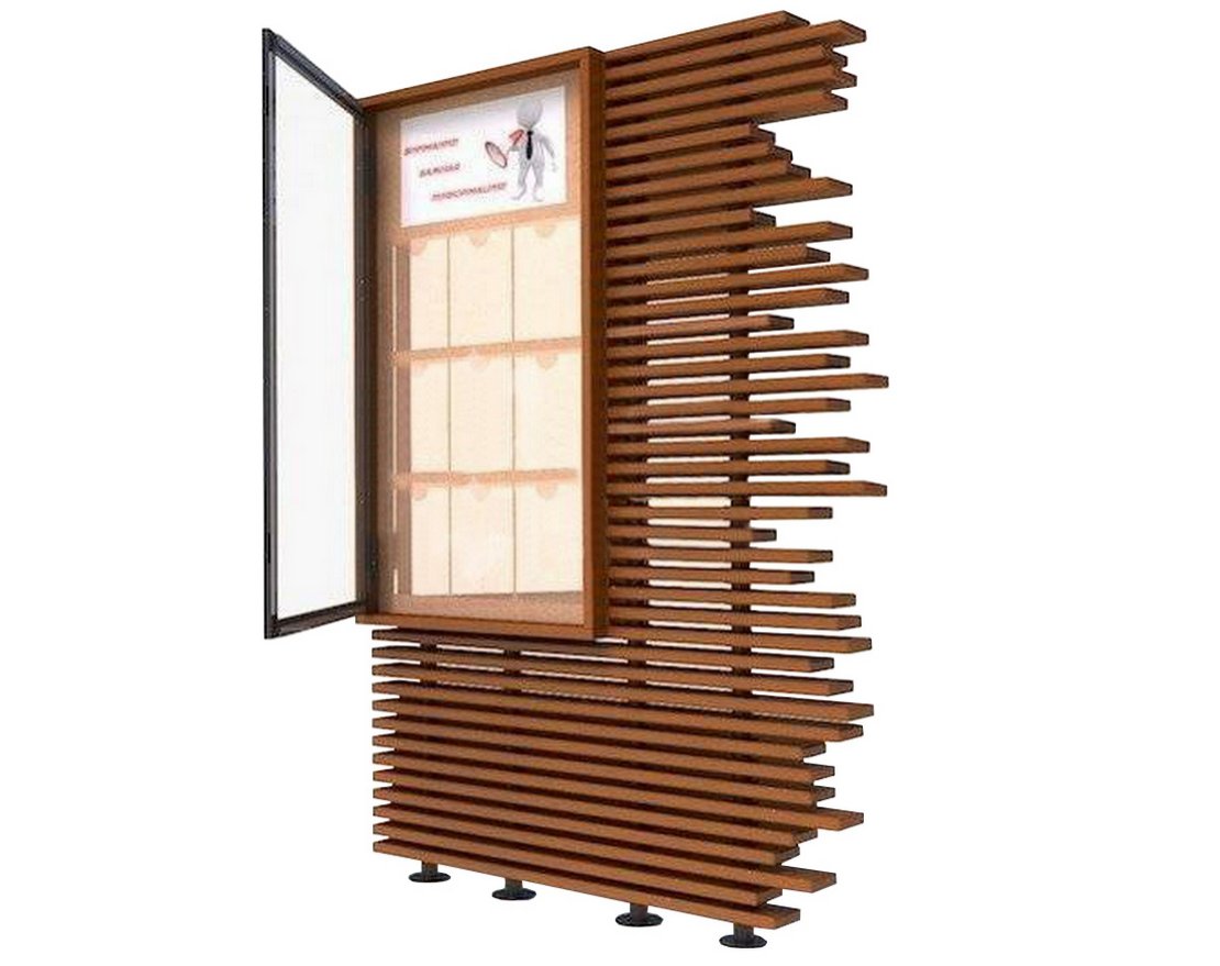 Конструкция предназначена для установки на улице и может быть использована для размещения рекламных материалов.