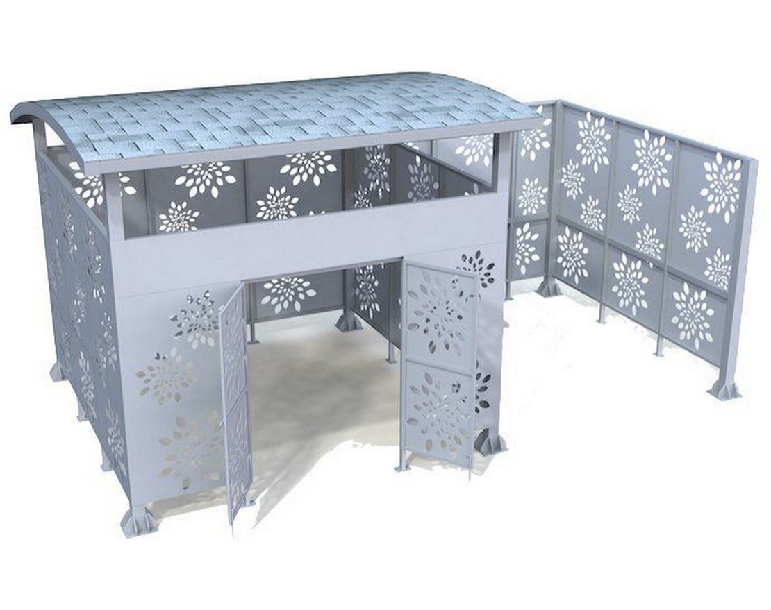 • Опоры, каркас, крыша: Сталь. Покрыты порошковой полимерной краской. Стандартный цвет – серый RAL 7040.