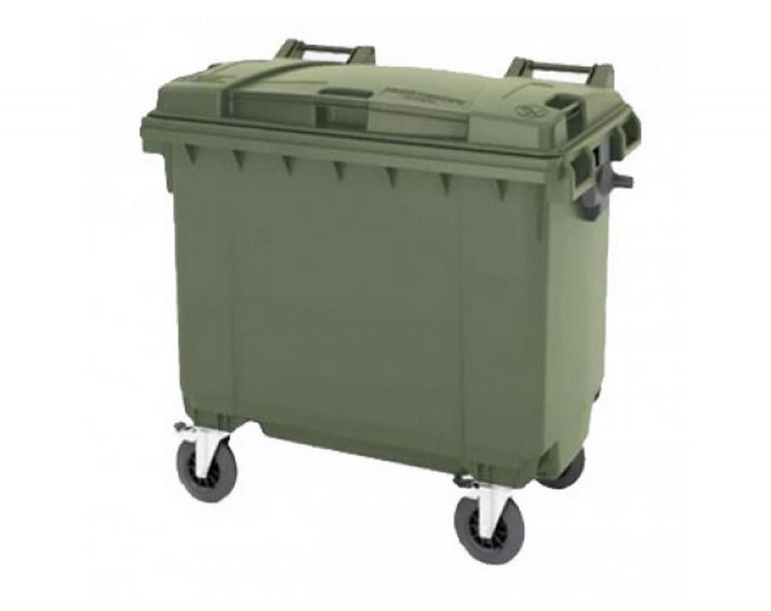 Мусорный пластиковый контейнер 770 литров на четырех колесах. Цельнолитые ручки контейнера, усиленный узел крепления колес и усиленное место захвата гребенкой делают полимерный мусорный контейнер 770 л уникальным высококачественным продуктом, прекрасно приспособленным для эксплуатации в российских климатических условиях. Контейнер 770 л выпускается в трех цветах: зеленом, синем и сером.