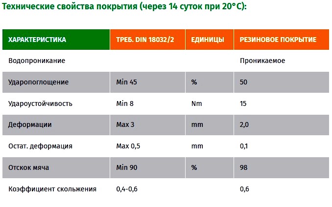 В составе покрытия также используется пигмент чёрного цвета и резиновая крошка фракцией 3 миллиметра.
