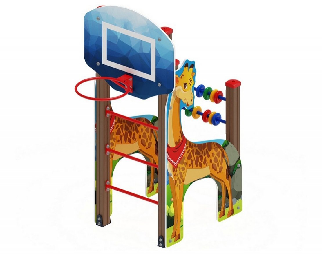 Борт выполнен из березовой фанеры толщиной 18мм, и габаритами 1000х1800. Фанера имеет тщательную обработку торцов и окраску желтого цвета. Стилизован под жирафа.