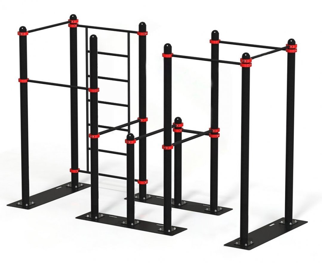 Спортивный комплекс — сборная металлическая конструкция, которая состоит из десяти опорных металлических столбов, пяти перекладин, трёх поручней и шведской стенки, а также включает в себя пластины для крепления и полусферические заглушки.