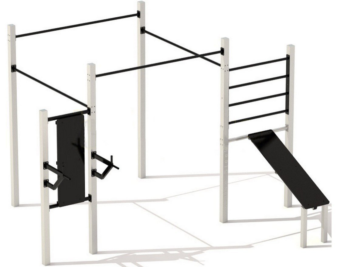 На вашей улице может появиться новый элемент — спортивные тренажёры для воркаута. Они предназначены для тренировки всех групп мышц и состоят из нескольких снарядов: шведской стенки и турников, перекладин и скамьи для упражнений на пресс, а также брусьев.