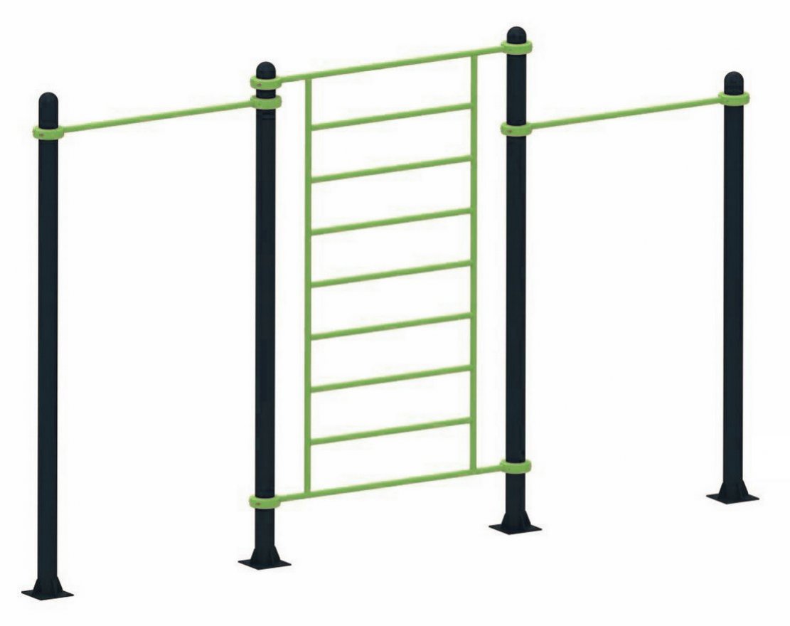 Спортивный комплекс на хомутах для установки на улице представляет собой комбинацию из двух элементов: турника и шведской стенки. Комплекс разработан для укрепления мышц пресса, плечевого пояса и спины, а также для развития силы и выносливости.