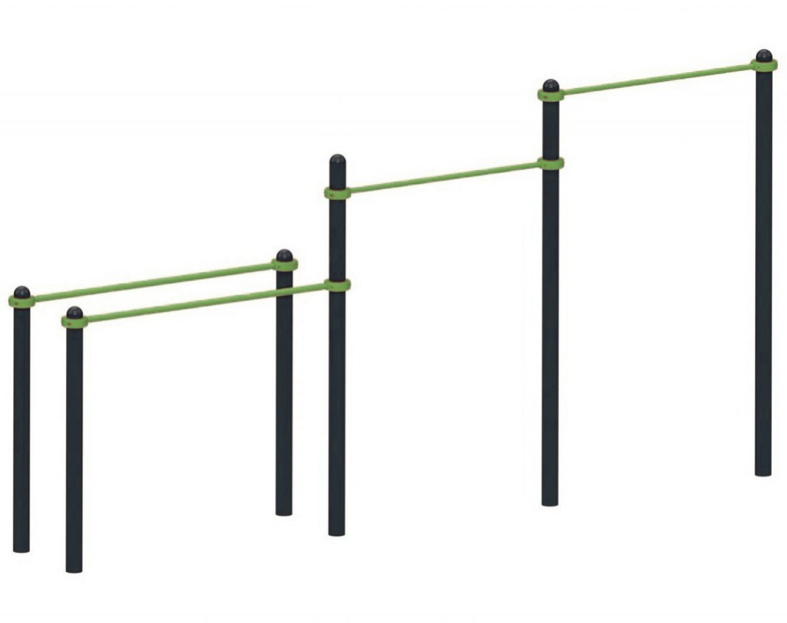 Элементы комплекса регулируются по высоте благодаря хомутам, поэтому заниматься на нём могут люди с разным ростом и уровнем подготовки. Изделия выполнены из прочной стали и покрыты порошковой краской. Это обеспечивает их долговечность и устойчивость к внешним воздействиям.