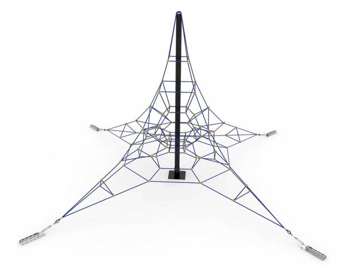 Конструкция представляет собой канат диаметром 16 миллиметров, изготовленный из армированного сталью полипропиленового шнура. Канатная конструкция имеет следующие размеры: высота — 360 сантиметров, основание — 600 сантиметров в ширину и 600 см в длину.