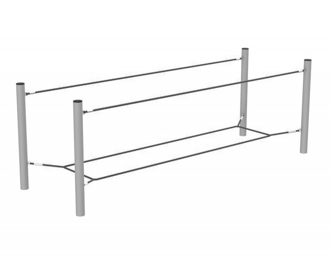 Канатный комплекс Пети 1 предназначен для физического развития детей, устанавливается на детских площадках, в парках, школах, детских садах и других местах детского отдыха.