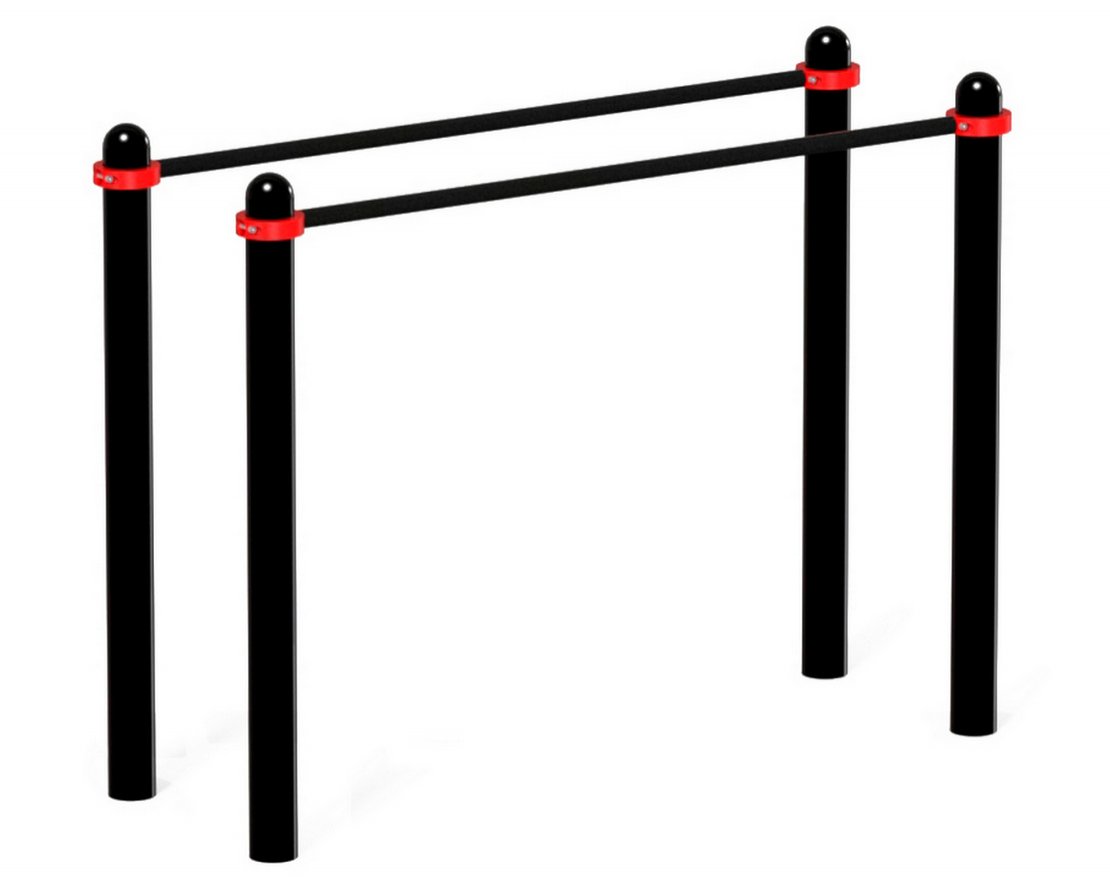 На улице можно установить уличные брусья для занятий воркаутом. Стойки тренажёра выполнены из круглой или квадратной трубы толщиной 3 или 3,5 миллиметра. Высота конструкции составляет 140 сантиметров, а длина рабочей поверхности — 180 сантиметров. Брусья окрашены порошковой краской, что защищает их от коррозии.