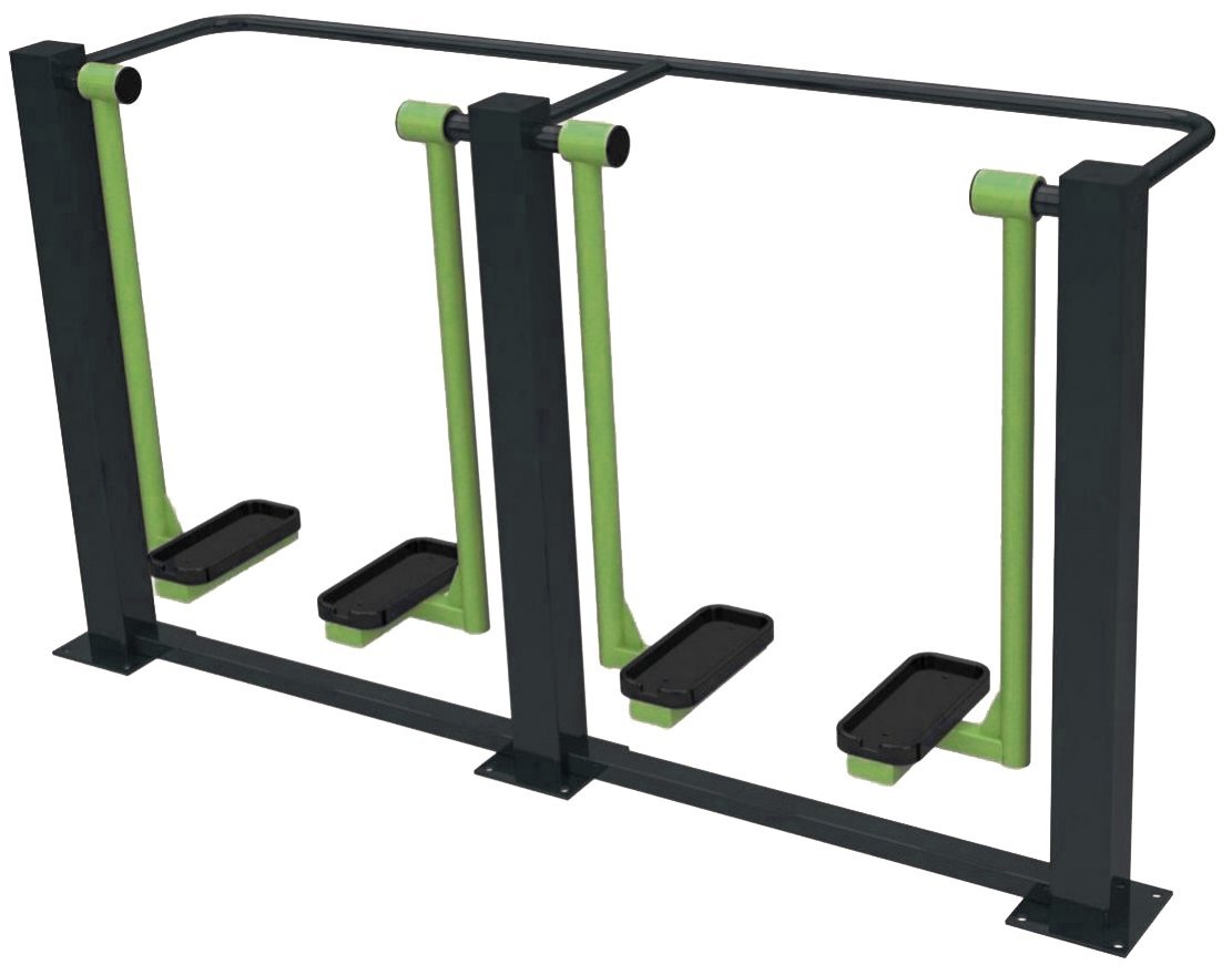 Уличный тренажёр «Шагоход» двойной — это изделие из прочной стали с подвижной рычажной системой, предназначенное для тренировки мышц ног, таза и плечевого пояса, рассчитанное на двух пользователей одновременно.