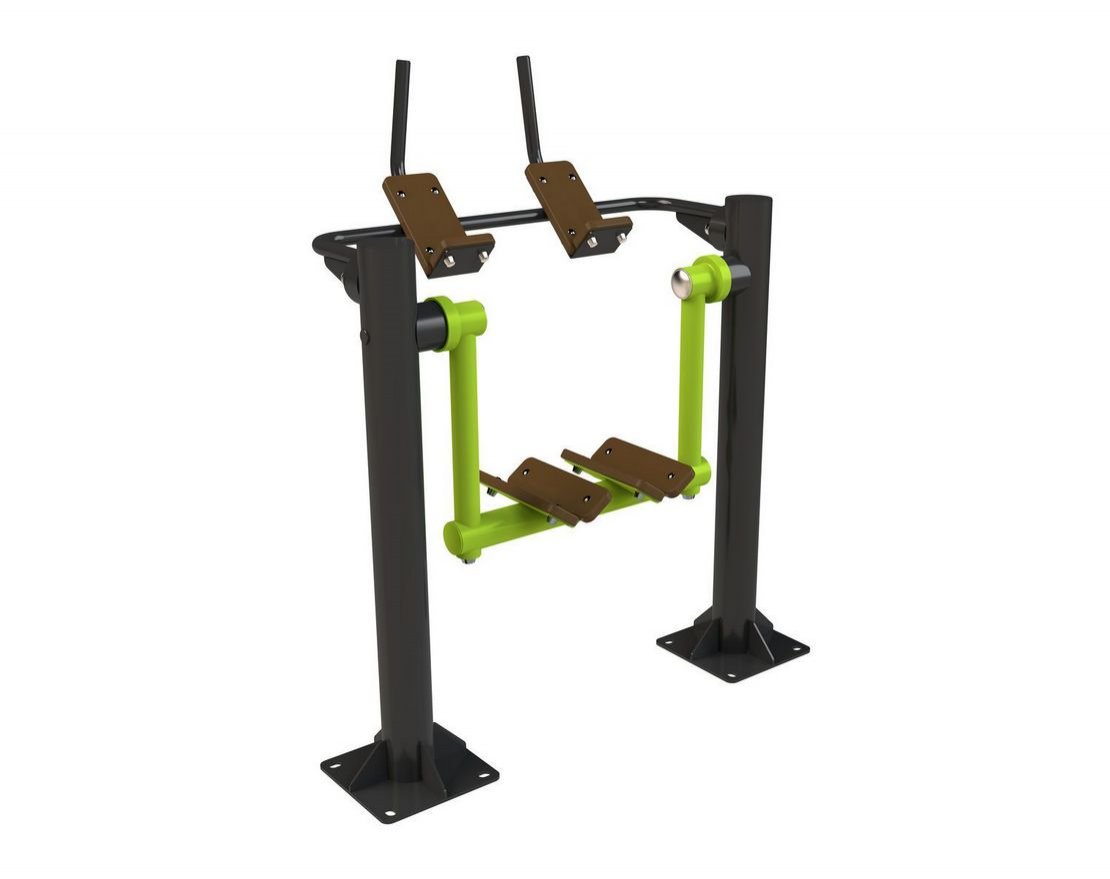 Уличный тренажёр Smart-1024 предназначен для тренировки различных групп мышц. Он состоит из двух столбов и рычагов, к которым крепится планка для упора ног. Тренажёр обеспечивает возможность тренировки мышц спины, брюшного пресса и других групп мышц благодаря наличию рычагов и планки для упора ног, которые регулируются под разный рост и уровень подготовки пользователей.