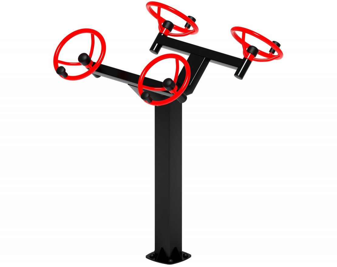Уличный тренажёр выполнен в эффектном красном цвете с контрастными чёрными элементами. Он станет ярким акцентом на спортивной площадке и привлечёт внимание прохожих.