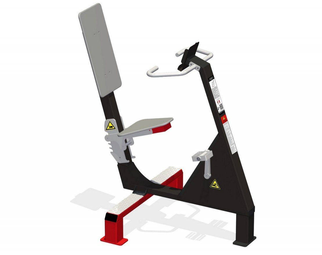 Уличный тренажёр для развития икроножных и ягодичных мышц с надёжным механизмом нагрузки — это отличное решение для установки во дворе или на другой открытой площадке.