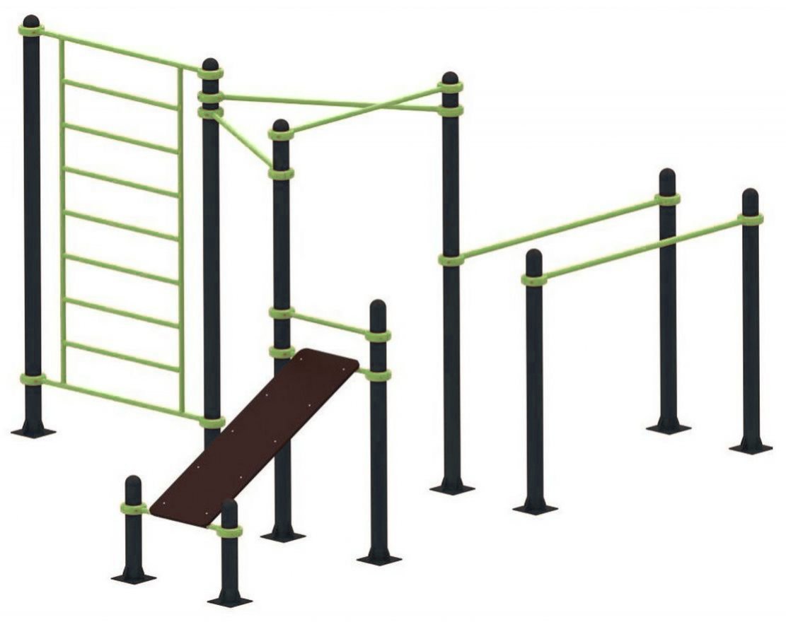 Универсальный уличный спортивный комплекс включает в себя несколько элементов: