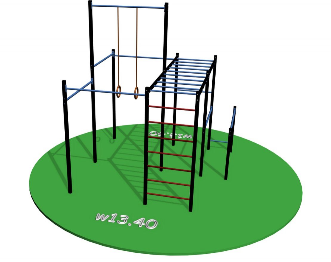 Workout w13.40 — это многофункциональный уличный спортивный комплекс, который можно установить как на придомовой территории, так и на даче. Комплекс предназначен для людей, которые хотят поддерживать хорошую физическую форму, но не имеют возможности посещать тренажёрный зал.