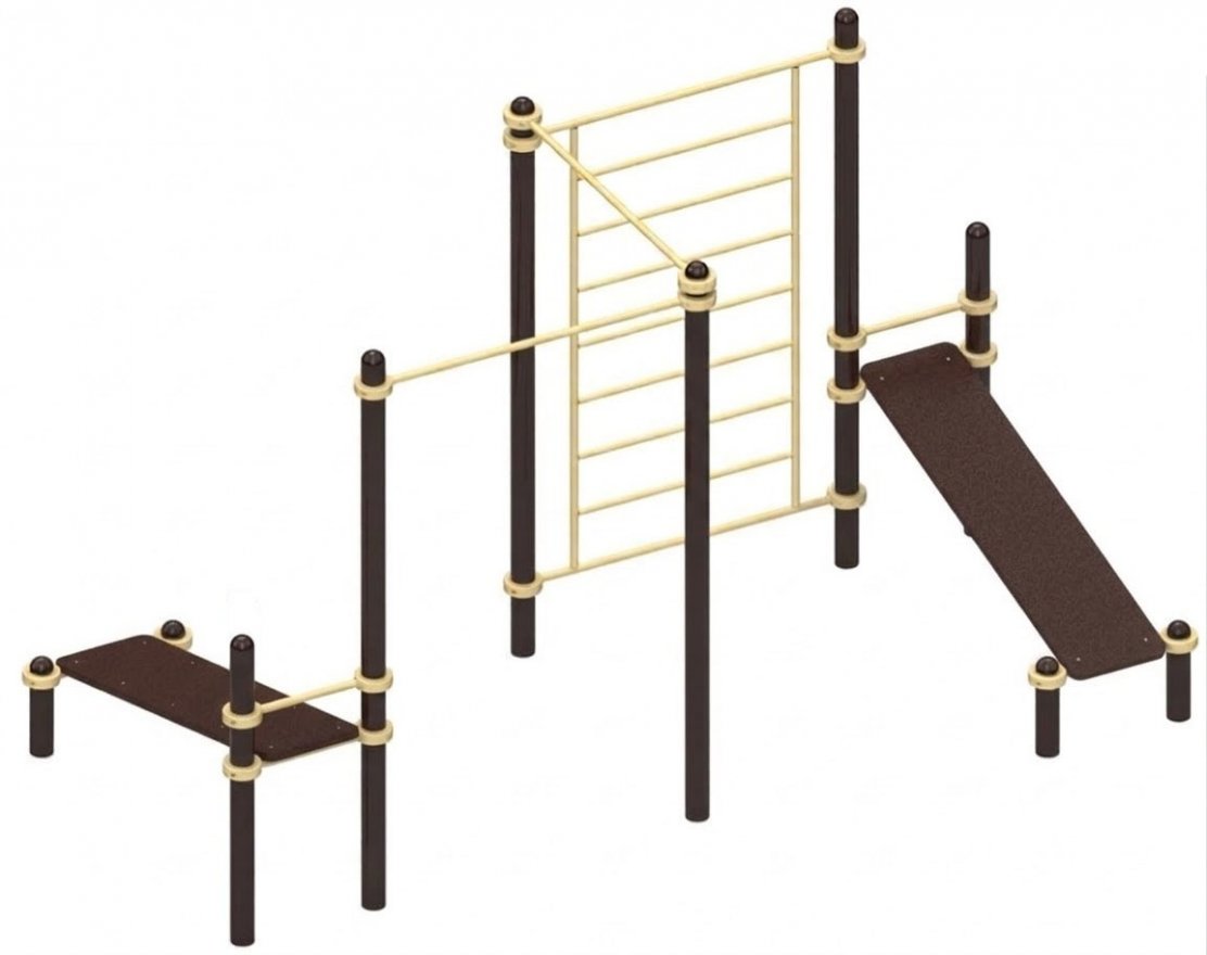 Элементы комплекса изготовлены из прочной стали и покрыты порошковой краской. Это обеспечивает долговечность и устойчивость к внешним воздействиям.